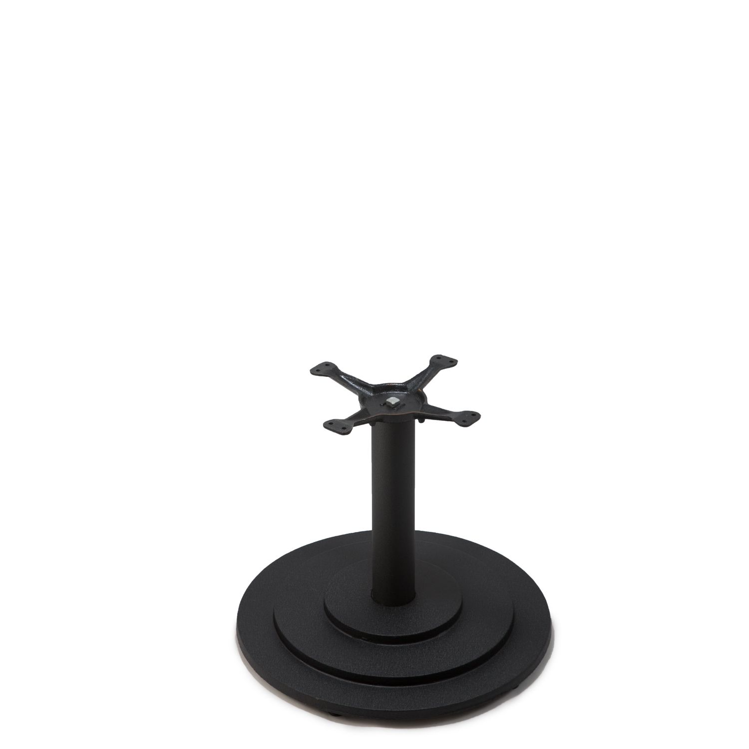 With a minimally designed cast iron base, the 2000 series table bases add a bit of flair without distracting from your restaurant décor. This table base features a 13", cast iron mounting plate with a 3" diameter steel column, finished in commercial grade black powder coat that resists corrosion and blends seamlessly in any cafe, diner, bar, pub or restaurant dining areas. This table base column is cut to coffee table height (18"), has a base spread of 22" at the floor, and a weight of up to 42 pounds to provide support for square tops up to 36" and round tops up to 42" in size.