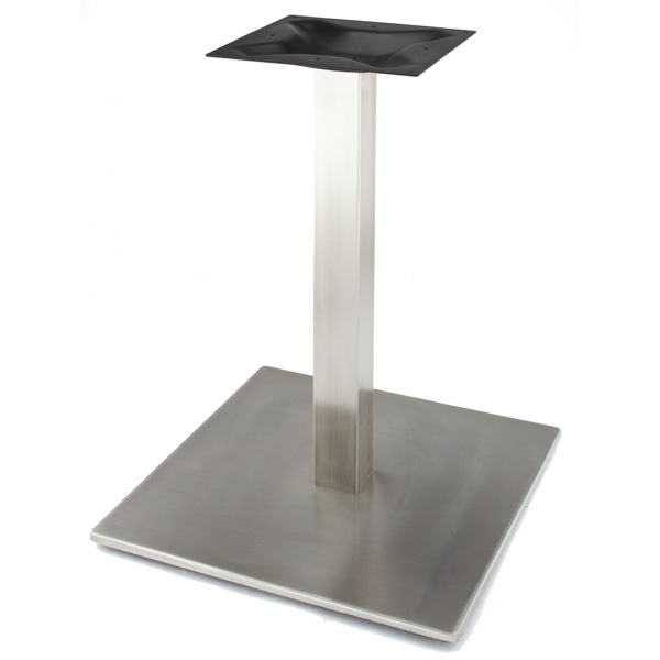 stainless steel table base models for outdoor applications, and for supporting heavy table tops in humid environments. Stainless steel has a beautiful silver finish, is easy to clean, and resists corrosion. That last quality is what makes s