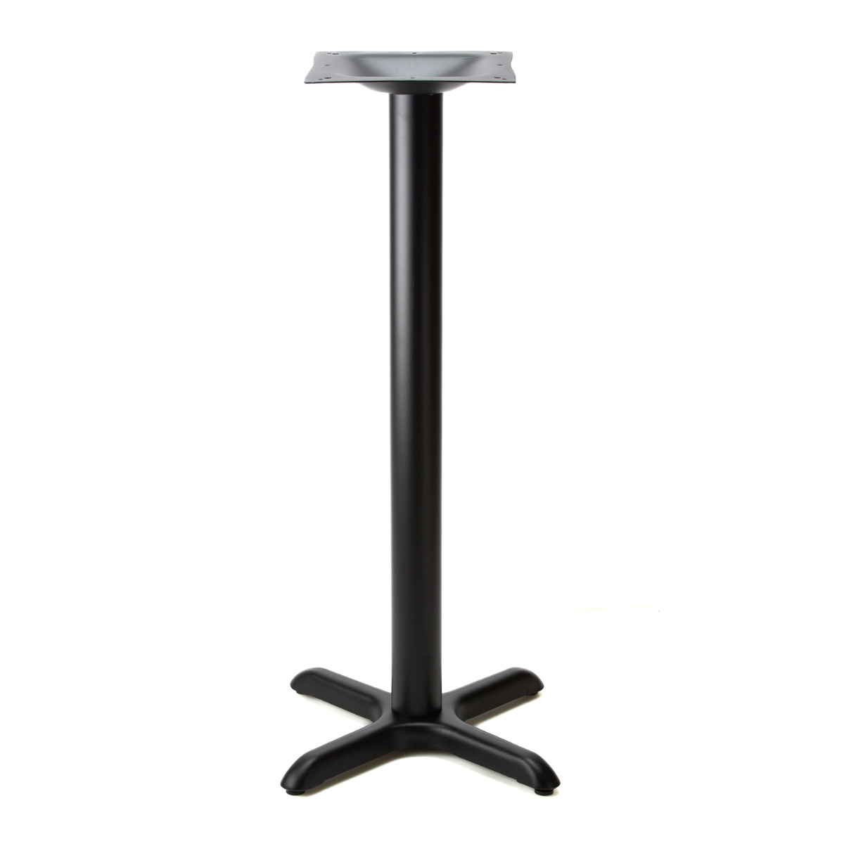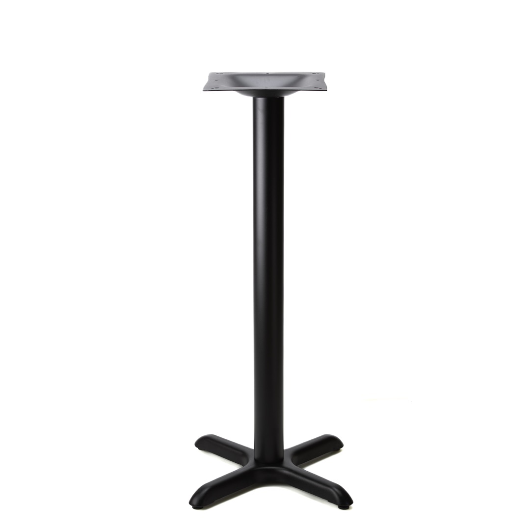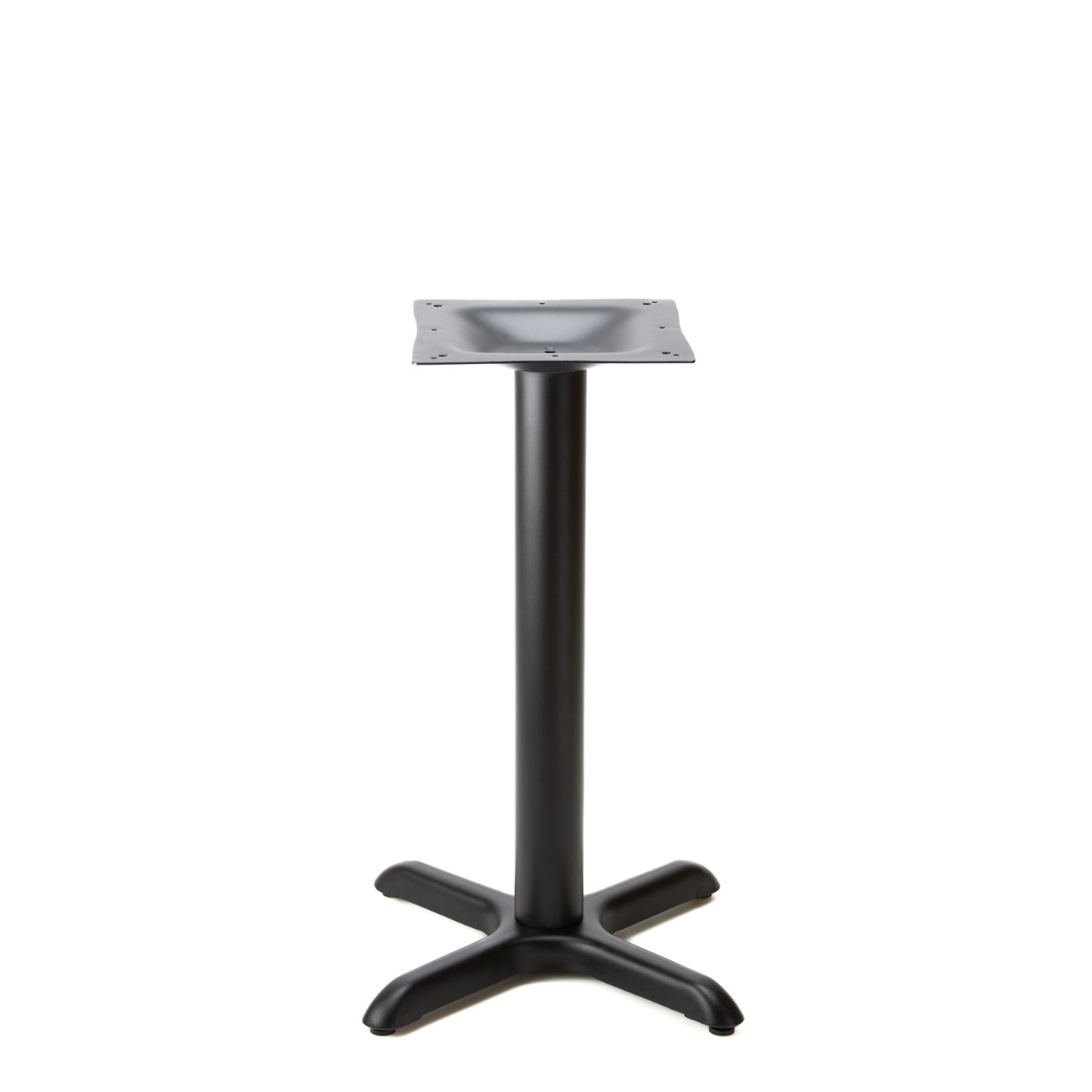 These simple and durable X style bases are made from stamped steel and feature columns with welded mounting plates, both for strength and ease of installation (known as “labor saver columns”). The stamped steel design is paired with a satin black powder coat for a smooth, matte finish (the outdoor models have a zinc coating to help prevent corrosion). The mounting plates are 11” x 11” square, welded to 3” diameter columns. The X style provides support for tables without getting in the way of your chairs, making it a great space efficient choice.