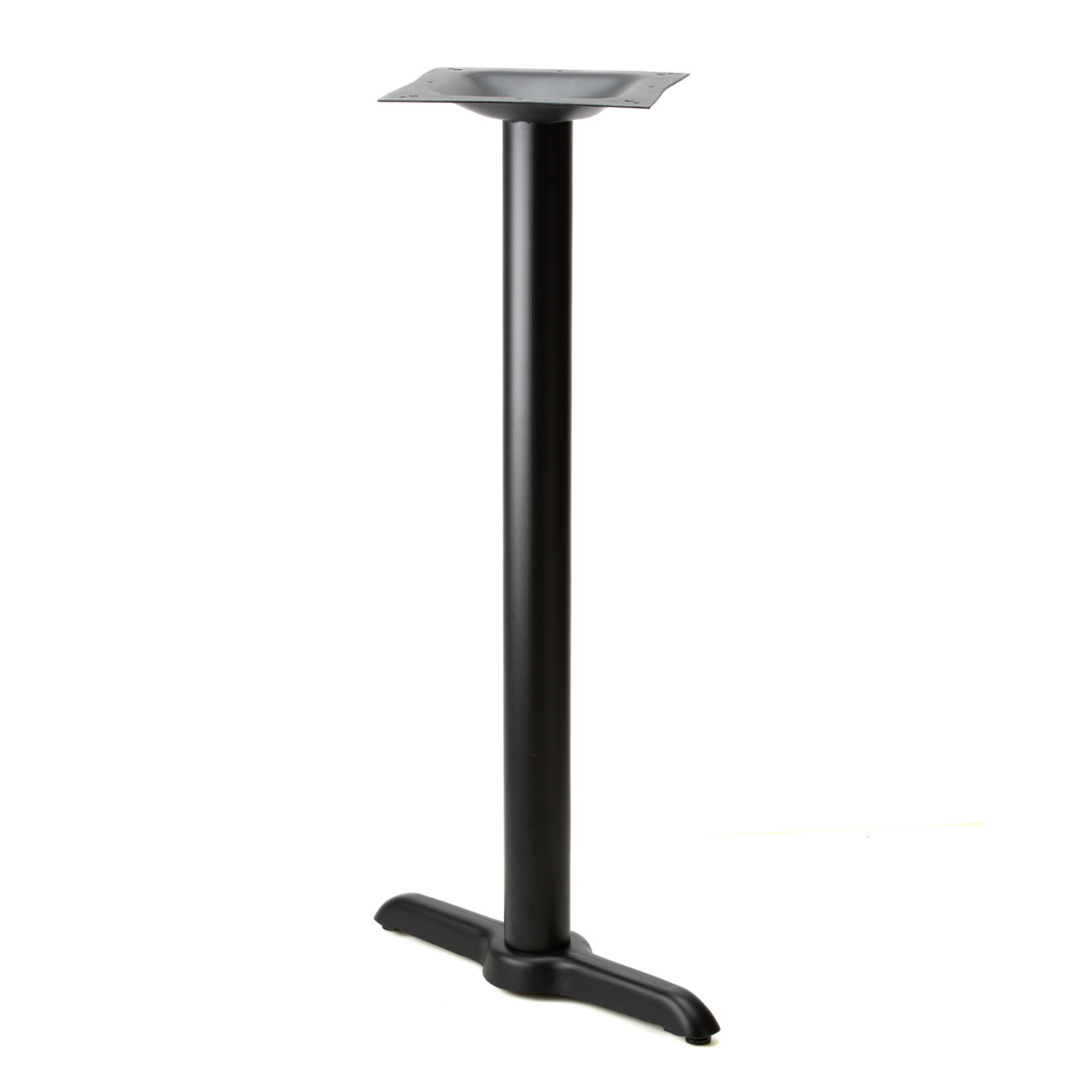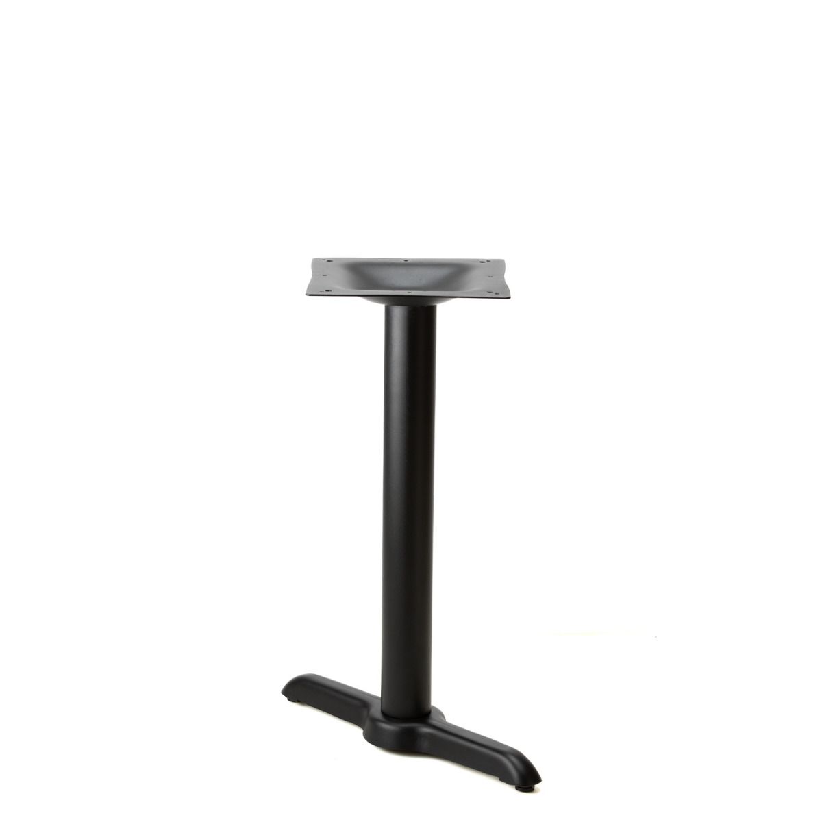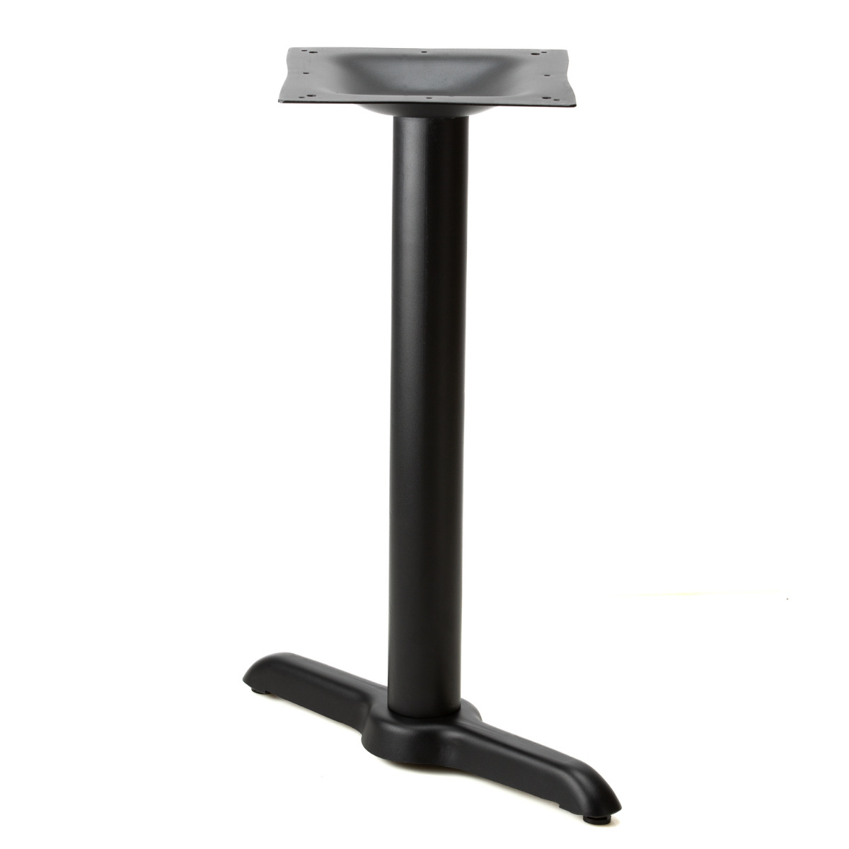 These simple and durable T style bases are made from stamped steel and feature columns with welded mounting plates, both for strength and ease of installation (known as “labor saver columns”). The stamped steel design is paired with a satin black powder coat for a smooth, matte finish (the outdoor models have a zinc coating to help prevent corrosion). The mounting plates are 11” x 11” square, welded to 3” diameter columns. The T style provides support for rectangular tables without getting in the way of your chairs, making it a great choice for office desks or wheelchair access (on appropriately sized tables).