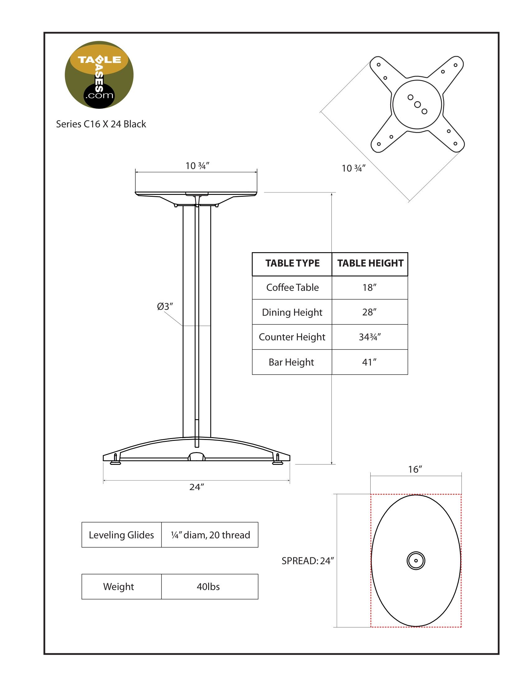 The C16x24 Black Table Base Features:
