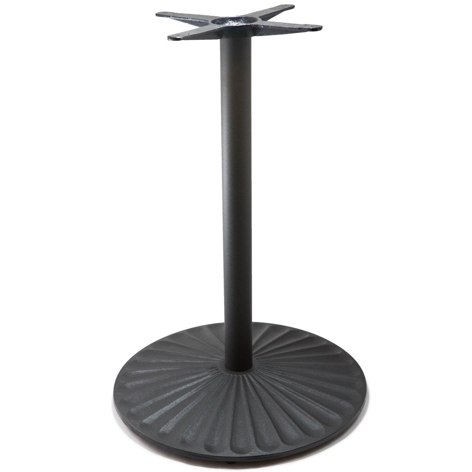 With a patterned cast iron base, the D28 table base adds a bit of flair without distracting from your restaurant décor. This table base features a 19" cast iron mounting plate and 3" diameter steel column, finished in commercial grade black powder coat that resists corrosion and blends seamlessly in any cafe, diner, bar, pub or restaurant dining areas. With four different heights available, Coffee table height, Dining height, Counter height or Bar height, this table base has the versatility to support your various needs. The table base has a spread of 28" at the floor, and a weight of up to 75 pounds to provide support for square and round tables up to 48" in size.
