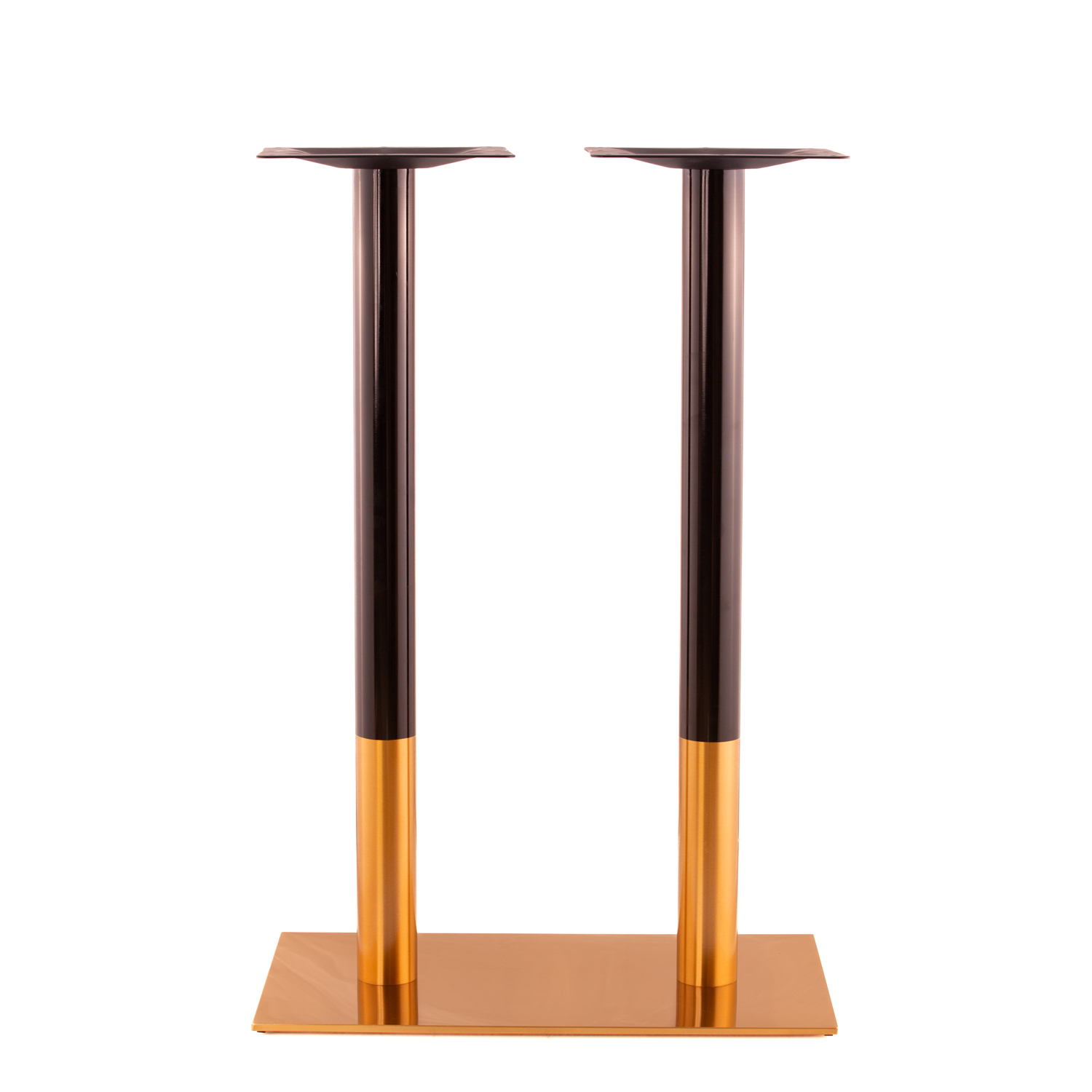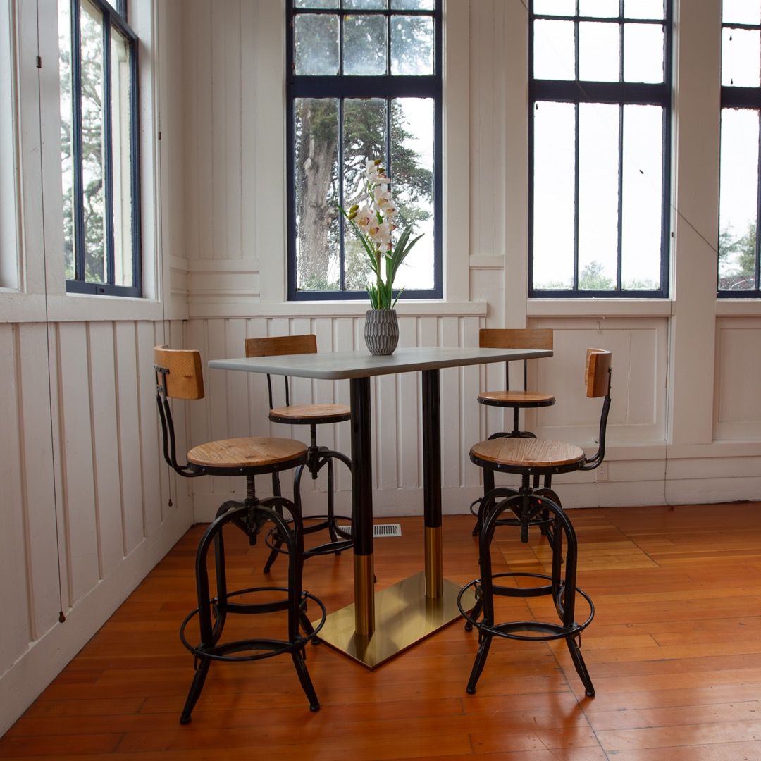 The Deco series is a versatile line of steel table bases with a beautiful brushed brass and glossy black two tone finish. The base bottoms are wrapped in steel that has a vacuum plated brushed brass finish. The columns have a dual finish, with the bottom portion finished in the same vacuum plated brushed brass, and the top finished in a glossy black paint. These have an elegant, art-deco esque look that fits in equally well in modern, traditional and vintage style environments. The Deco series features a wide array of different size base bottoms for table tops of various sizes, at Dining Height (28") and Bar Height (41").