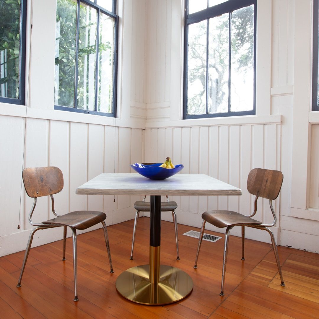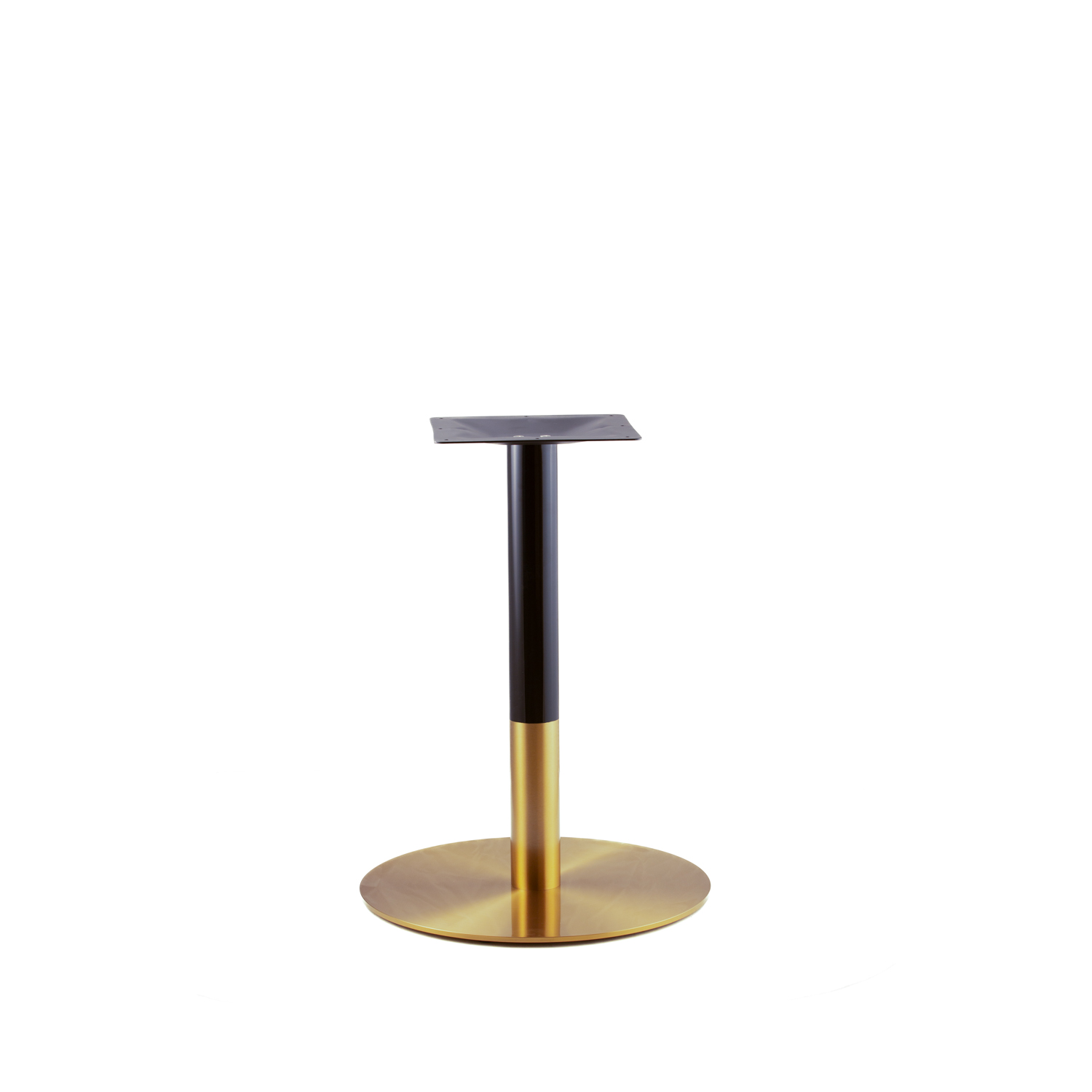The Deco series is a versatile line of steel table bases with a beautiful brushed brass and glossy black two tone finish. The base bottoms are wrapped in steel that has a vacuum plated brushed brass finish. The columns have a dual finish, with the bottom portion finished in the same vacuum plated brushed brass, and the top finished in a glossy black paint. These have an elegant, art-deco esque look that fits in equally well in modern, traditional and vintage style environments. The Deco series features a wide array of different size base bottoms for table tops of various sizes, at Dining Height (28") and Bar Height (41").