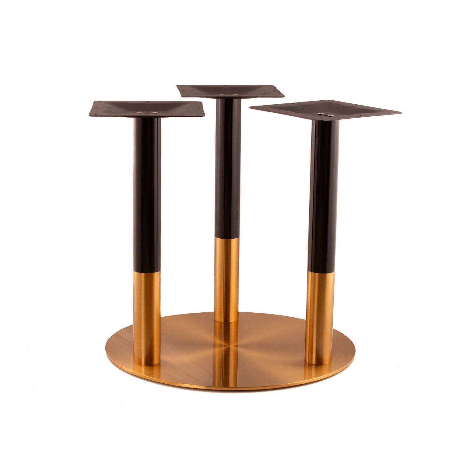 The Deco series is a versatile line of steel table bases with a beautiful brushed brass and glossy black two tone finish. The base bottoms are wrapped in steel that has a vacuum plated brushed brass finish. The columns have a dual finish, with the bottom portion finished in the same vacuum plated brushed brass, and the top finished in a glossy black paint. These have an elegant, art-deco esque look that fits in equally well in modern, traditional and vintage style environments. The Deco series features a wide array of different size base bottoms for table tops of various sizes, at Dining Height (28") and Bar Height (41").
