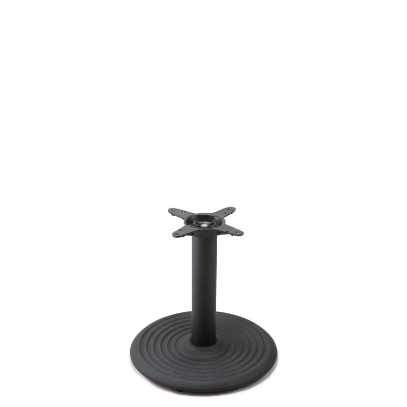 With a ring patterned cast iron base, the I18 table base adds a bit of flair without distracting from your restaurant décor. This table base features an 11", cast iron mounting plate with a 3" diameter steel column, finished in commercial grade black powder coat that resists corrosion and blends seamlessly in any cafe, diner, bar, pub or restaurant dining areas. The table base pictured here is cut to coffee table height (18"). The table base has a spread of 18" at the floor, and a weight of up to 28 pounds to provide support for rectangular table tops up to 24"x30", and round or square tops up to 30" in size.
