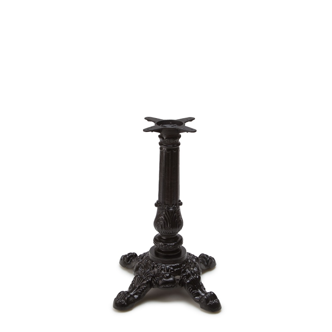 The ornate column and base will add a unique, European flair to your establishment, and the black, semi-gloss, powder coat finish blends seamlessly with any design, prevents corrosion and is easy to maintain. Utilizing a fully cast iron structure, these table bases are strong enough for the most demanding table tops; unlike similar designs made from steel, this base supports heavy materials such as granite or concrete without any flexing. The J24 table base weighs 62 pounds, features a 24" spread at the floor, and a 15" cast iron mounting plate, making it an excellent table base for round table tops up to 48" or square table tops up to 42" in size at dining height*. The J series table bases provide the versatility you need, with a design that won't spoil your décor. Standard heights for the J24 include Dining Height (29"), Bar Height (41"). A Counter Height model (34 3/4") is available on request (please call to order).