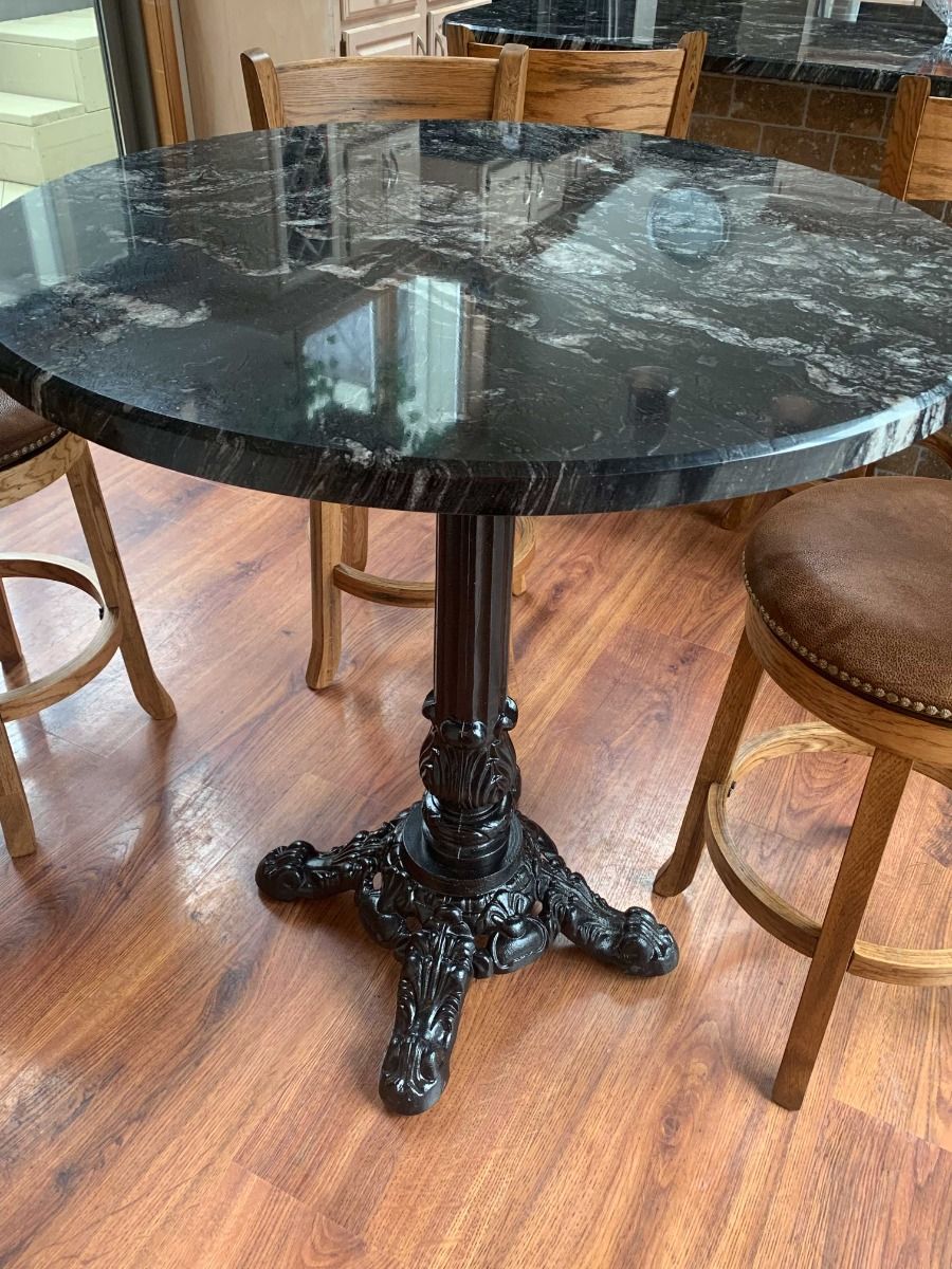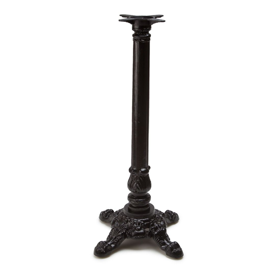The ornate column and base will add a unique, European flair to your establishment, and the black, semi-gloss, powder coat finish blends seamlessly with any design, prevents corrosion and is easy to maintain. Utilizing a fully cast iron structure, these table bases are strong enough for the most demanding table tops; unlike similar designs made from steel, this base supports heavy materials such as granite or concrete without any flexing. The J24 table base weighs 62 pounds, features a 24" spread at the floor, and a 15" cast iron mounting plate, making it an excellent table base for round table tops up to 48" or square table tops up to 42" in size at dining height*. The J series table bases provide the versatility you need, with a design that won't spoil your décor. Standard heights for the J24 include Dining Height (29"), Bar Height (41"). A Counter Height model (34 3/4") is available on request (please call to order).