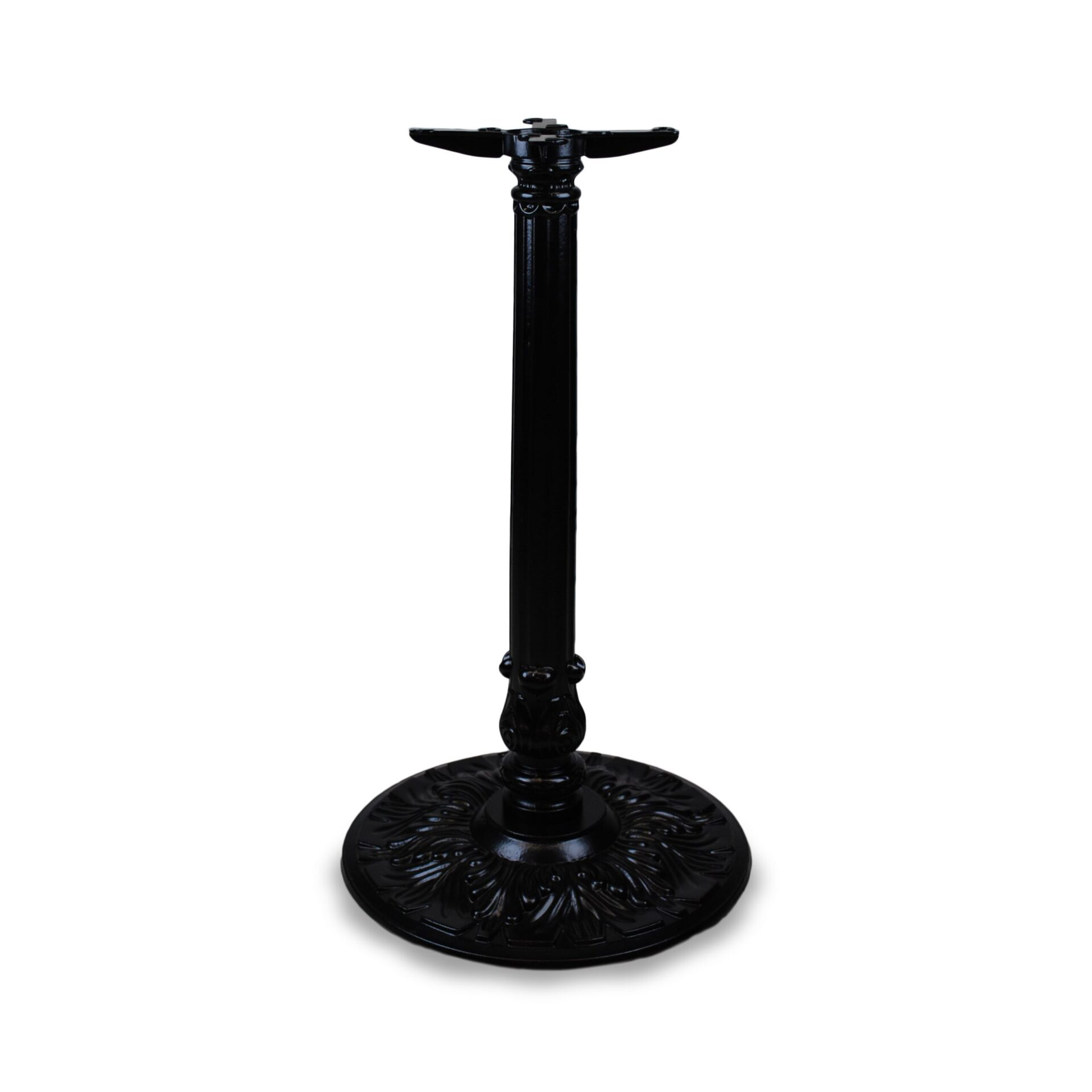This fully cast iron K Series table base is perfect for use in any dining, restaurant, home or commercial environments, and is strong enough to support heavy table top materials such as granite and marble, without any flexing. This table base features an 14" Steel mounting plate sitting atop a beautifully made, cast iron column to ensure your tables have the strength and stability you need without sacrificing looks. Finished with a semi-gloss black powder coat finish and zinc undercoat that resists corrosion, the K24 table base blends seamlessly in any, café, diner, bar, pub or restaurant dining areas. Please note that the K24 is corossion resistant but can rust over time if left outside in wet, humid or salty conditions. With a spread of 24" and a weight of 70 pounds, the table base is compatible with square tops up to 42" in size and round table tops up to 48" at Dining height (28").
