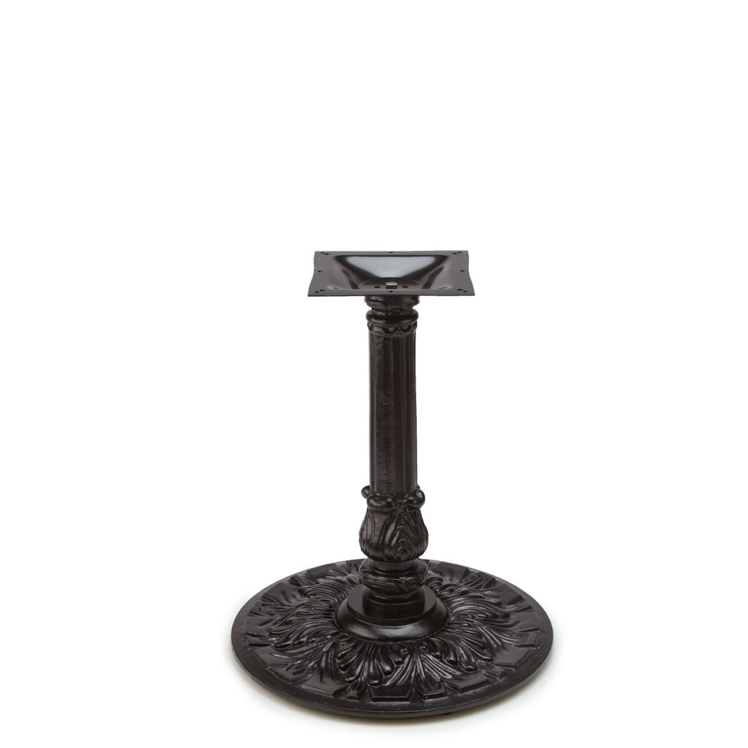 This fully cast iron K Series table base is perfect for use in any dining, restaurant, home or commercial environments, and is strong enough to support heavy table top materials such as granite and marble, without any flexing. This table base features a 15" cast iron mounting plate sitting atop a beautifully made, cast iron column to ensure your tables have the strength and stability you need without sacrificing looks. Finished with a semi-gloss black powder coat finish that resists corrosion, the K24 table base blends seamlessly in any, café, diner, bar, pub or restaurant dining areas. With a spread of 24" and a weight of 78 pounds, the table base is compatible with square tops up to 42" in size, round table tops up to 48" or rectangular tops up to 36 x 42".