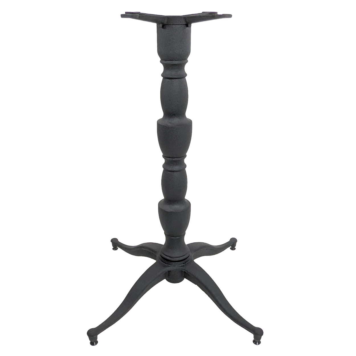 The L32X table base features full cast iron construction, to ensure you'll have a steady table even with heavy granite or marble tops*. This decorative table base features a black powder coat finish that resists corrosion, and blends seamlessly in any café, diner, bar, pub or restaurant dining areas. With a 15" Mounting Plate, a weight of 58 pounds and a spread of 32", the L32X table base is compatible with square and rectangular table tops up to 48" and round table tops up to 54" in size at dining height (up to 42" x 48" or 48" round at bar height).
