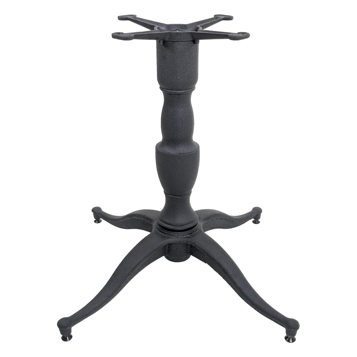 The L32X table base features full cast iron construction, to ensure you'll have a steady table even with heavy granite or marble tops*. This decorative table base features a black powder coat finish that resists corrosion, and blends seamlessly in any café, diner, bar, pub or restaurant dining areas. With a 15" Mounting Plate, a weight of 58 pounds and a spread of 32", the L32X table base is compatible with square and rectangular table tops up to 48" and round table tops up to 54" in size at dining height.