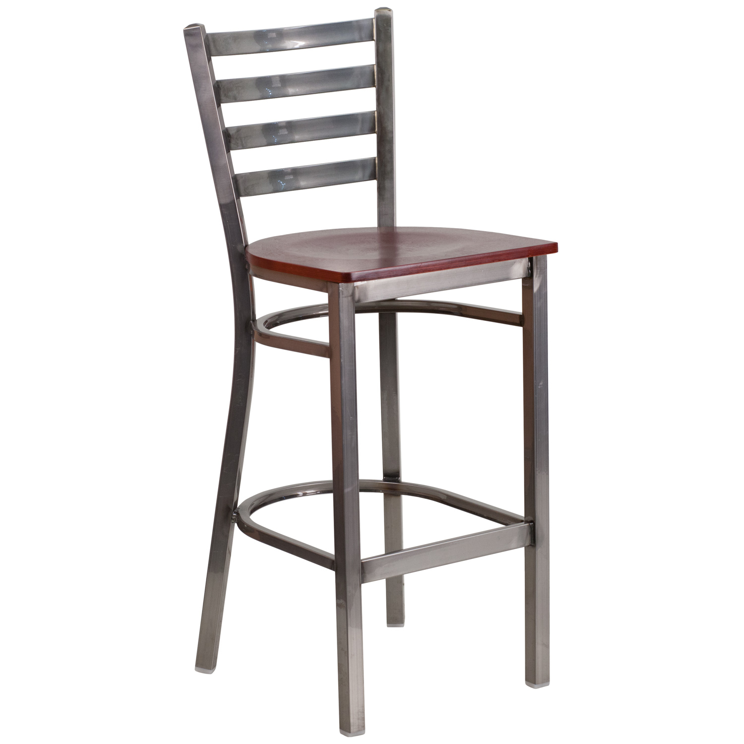 Our metal restaurant bar height stools are made with welded steel frames, and your choice of a finished plywood or padded vinyl seat in a variety of finishes, for a clean and stylish look that will stand the test of time. These bar stools have cross braced frames and have a 500 lbs weight capactiy. The steel frames are finished with a durable clear coat finish, and these are made to withsand the rigors of hospitality use. Each bar stool comes with plastic floor glides to help prevent scratching of your floors.