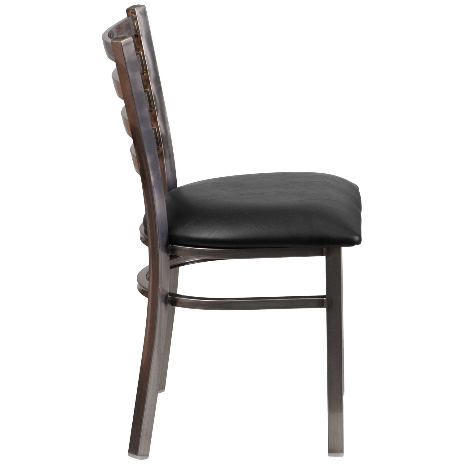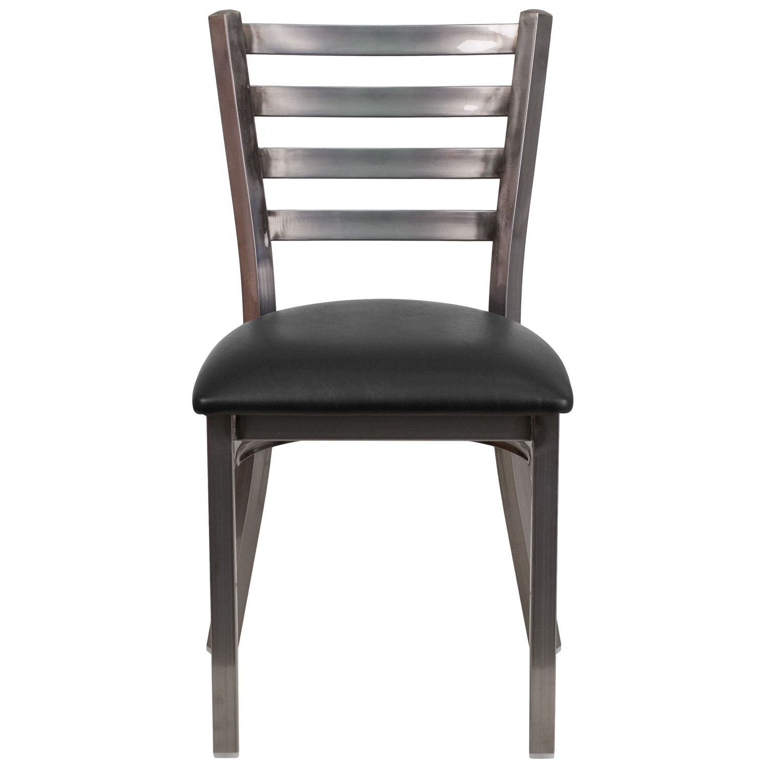 Ladder Back Metal Restaurant Chair - Clear Coat Frame - Black Vinyl Seat