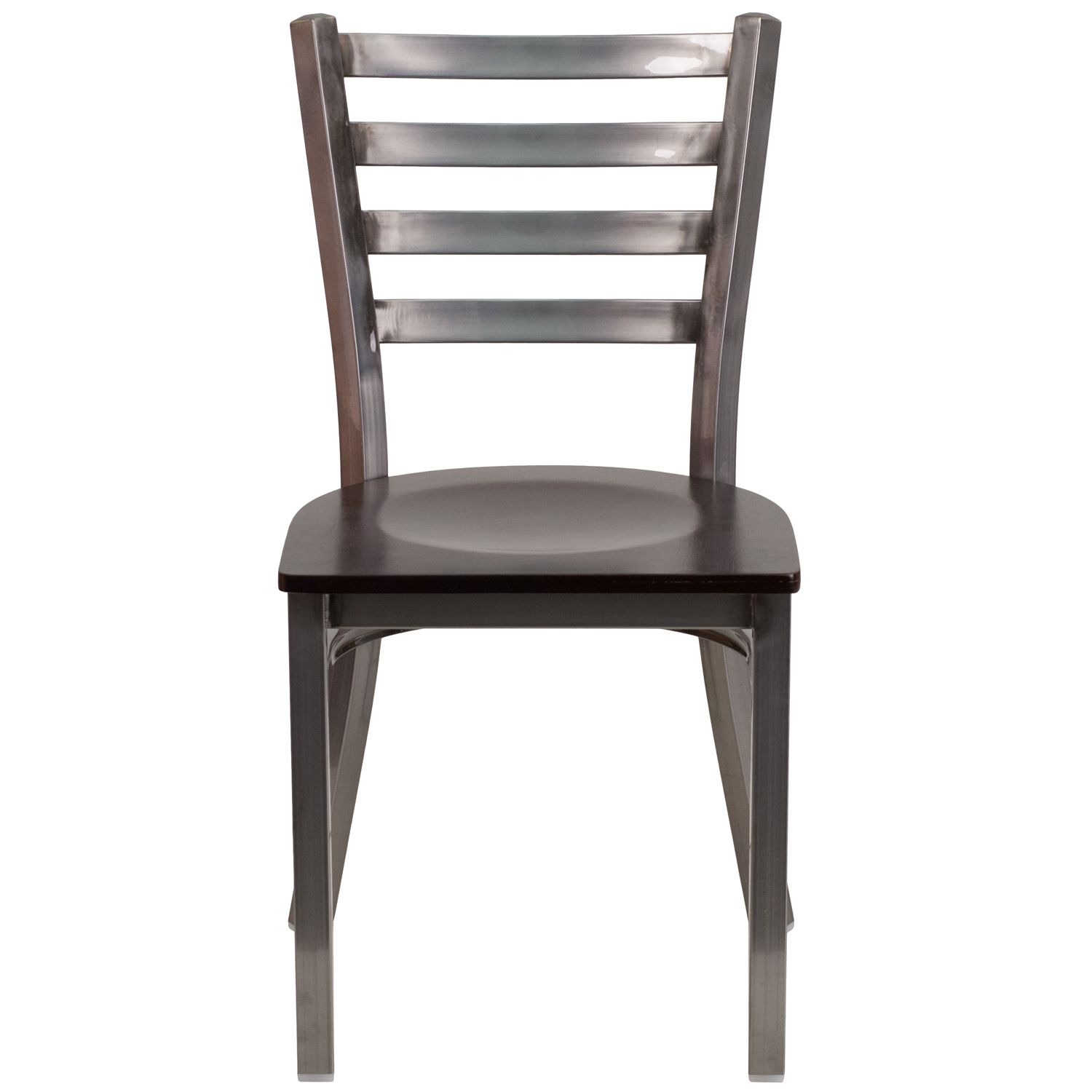 Ladder Back Metal Restaurant Chair - Clear Coat Frame - Walnut Wood Seat