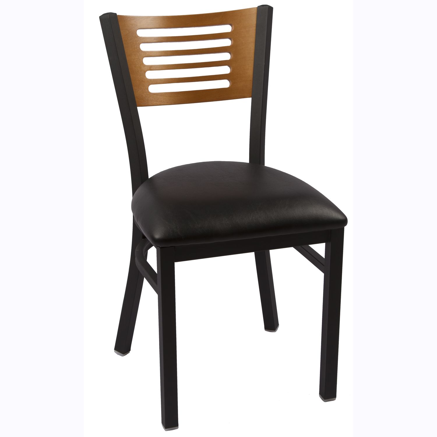 Metal Slatback Chair - Cherry - Black Vinyl Seat