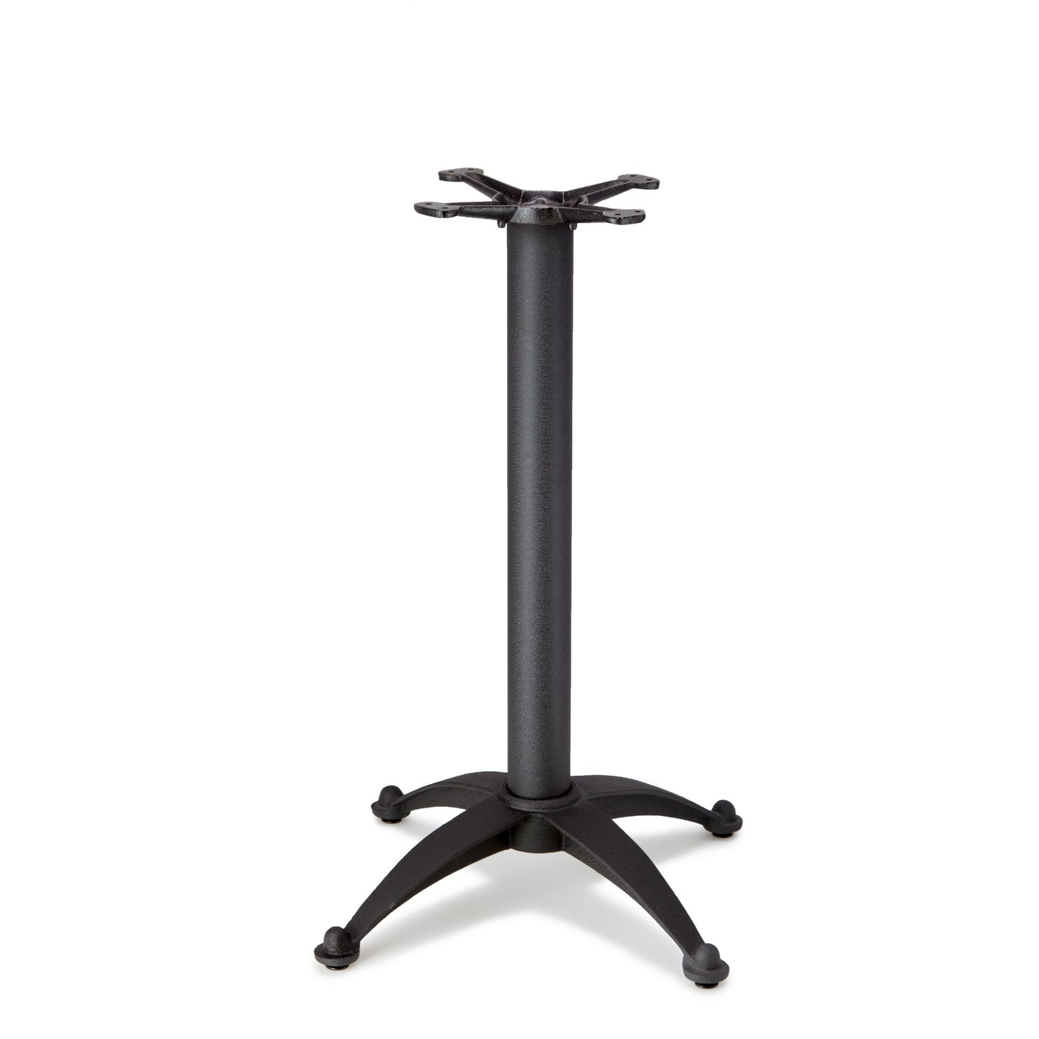 The N series table bases feature a beautiful curved base design, that rises elegantly from the feet of the base up to meet the column. The legged design makes it easy to accommodate chairs and your guest's feet, while still providing excellent support for table tops of appropriate sizes and weights. This series features a commercial grade, black powder coat finish that resists corrosion, and blends seamlessly in any café, diner, bar, pub or restaurant. With four different heights available, Coffee Table Height, Dining Height, Counter Height and Bar Height, as well as the option for custom heights, the N series table bases have the versatility to support your various needs.