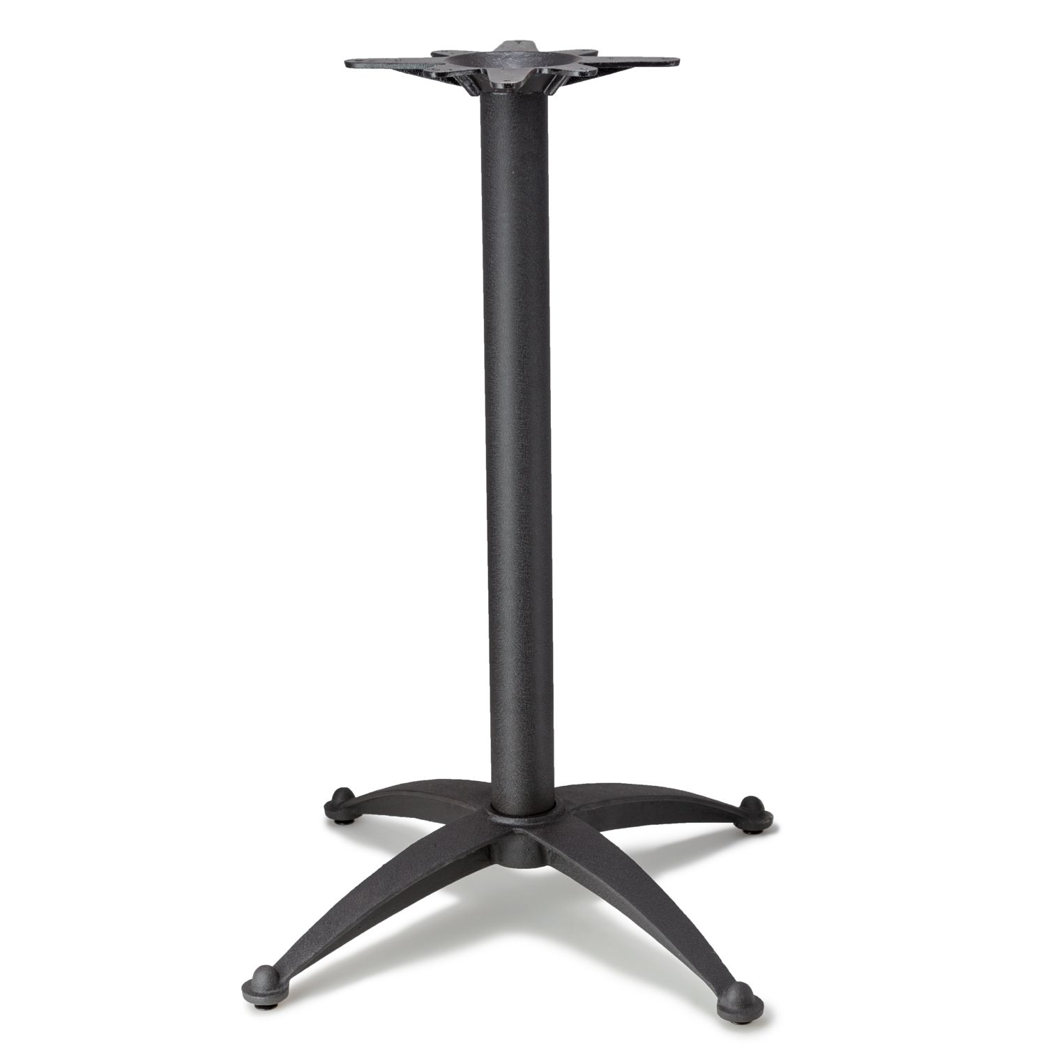 The N series table bases feature a beautiful curved base design, that rises elegantly from the feet of the base up to meet the column. The legged design makes it easy to accommodate chairs and your guest's feet, while still providing excellent support for table tops of appropriate sizes and weights. This series features a commercial grade, black powder coat finish that resists corrosion, and blends seamlessly in any café, diner, bar, pub or restaurant. With four different heights available, Coffee Table Height, Dining Height, Counter Height and Bar Height, as well as the option for custom heights, the N series table bases have the versatility to support your various needs.
