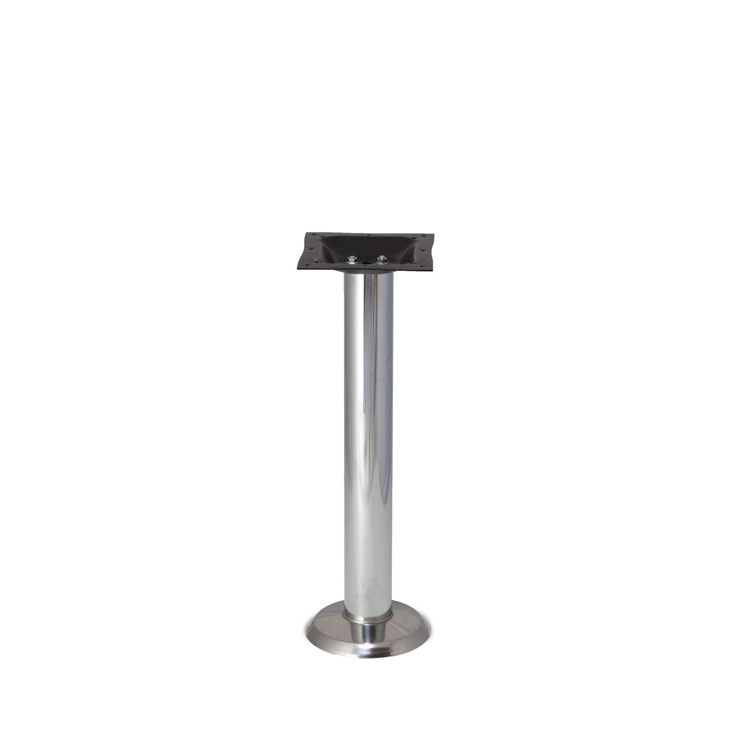 Constructed of high quality steel, the P1F Chrome is finished with in polished chrome that resists corrosion, and integrates seamlessly for use in any indoor dining, restaurant, home or commercial environment while providing a modern look and feel. This table base is cut to dining height (28"), and with three additional heights available, coffee table height, counter height and bar height, the P1F Chrome table base can be customized for your various needs. This table base features a 7-5/8"x7-5/8" steel mounting plate with 3" diameter column, and is perfect for square tops up to 36" and round tops up to 42" in size. The P1F Chrome table base has a spread of 8" at the floor, and weighs in at up to 14 pounds. The in-floor mounting hardware is concealed by an attractive polished chrome, steel cover that blends with the column for a clean and simple look.