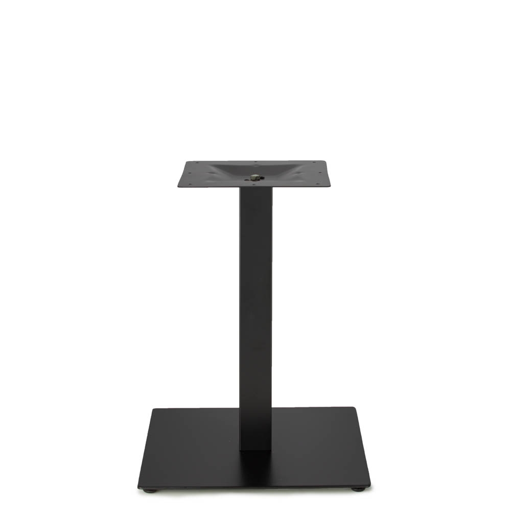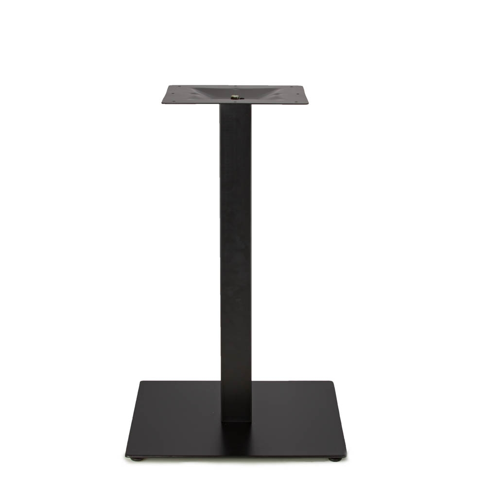 This table base features a 12" x 12" steel mounting plate with a 3" x 3" square, 16 gauge steel column. The commercial grade, black satin powder coat finish has a smooth finish and light sheen. Combined with the zinc coating, the Ravello line is very corrosion resistant, making them a great table choice for an outdoor table base. These bases are also available with optional stainless steel assembly hardware, for added corrosion resistance. The square Ravello bases are available at Dining Height and Bar Height. Tablebases.com can also cut these table bases to custom heights (please call to order).