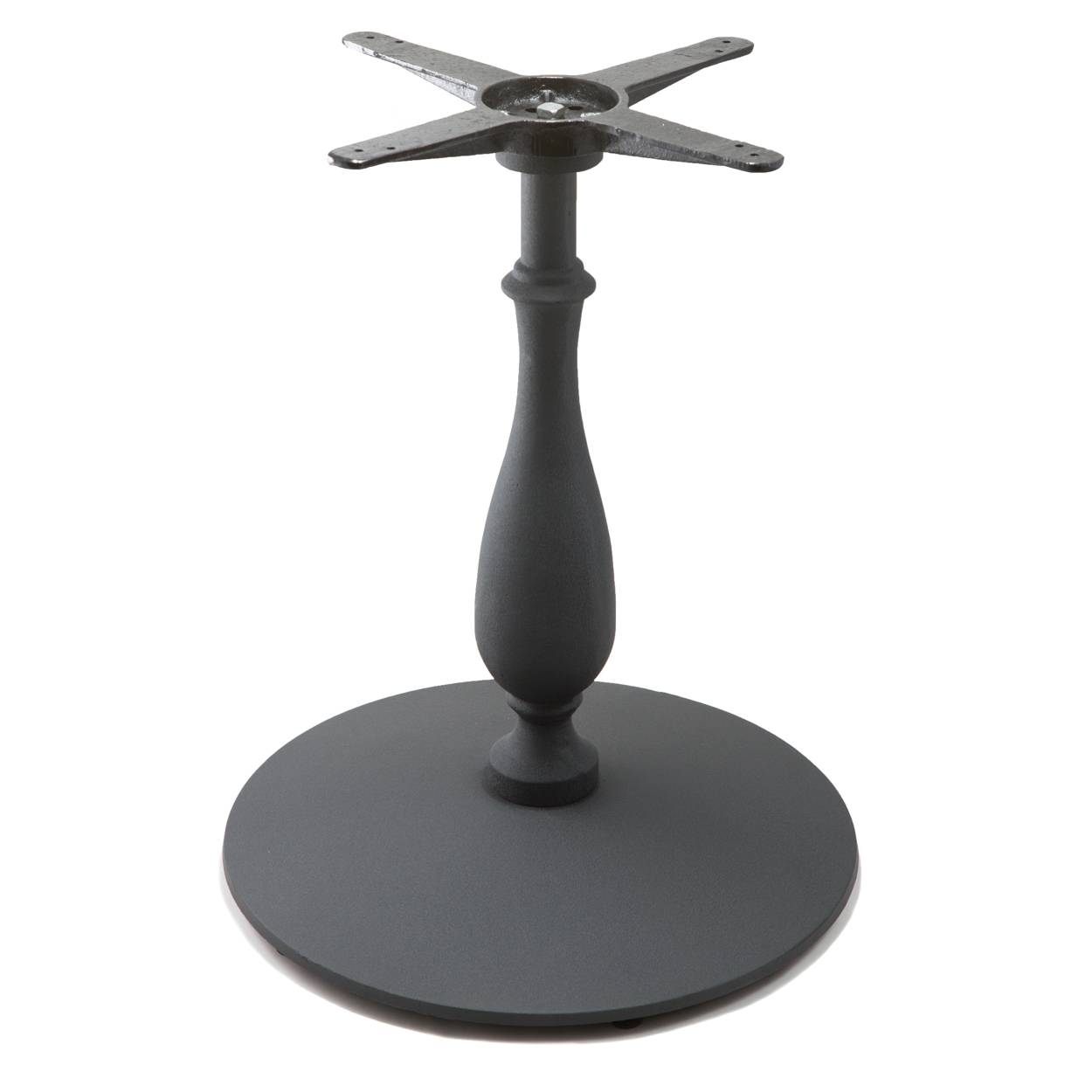 Featuring an 11" mounting plate (or a 19" mounting plate on the extra heavy weight model) and rigid, cast iron construction, this vintage inspired farmhouse style table base is perfectly matched to heavy table tops such as granite and marble. The Savile-22 table base has a commercial grade, black powder coat finish that resists corrosion and blends seamlessly in any, café, diner, bar, pub or restaurant dining areas. There are three weights available - up to 78 pounds - to suite various applications. With a height of 28" tall and featuring a 22" diameter spread, this table base is suitable for square and round tops up to 42"*. Please click on an invidual model to see the recommended table top information for each specific weight.