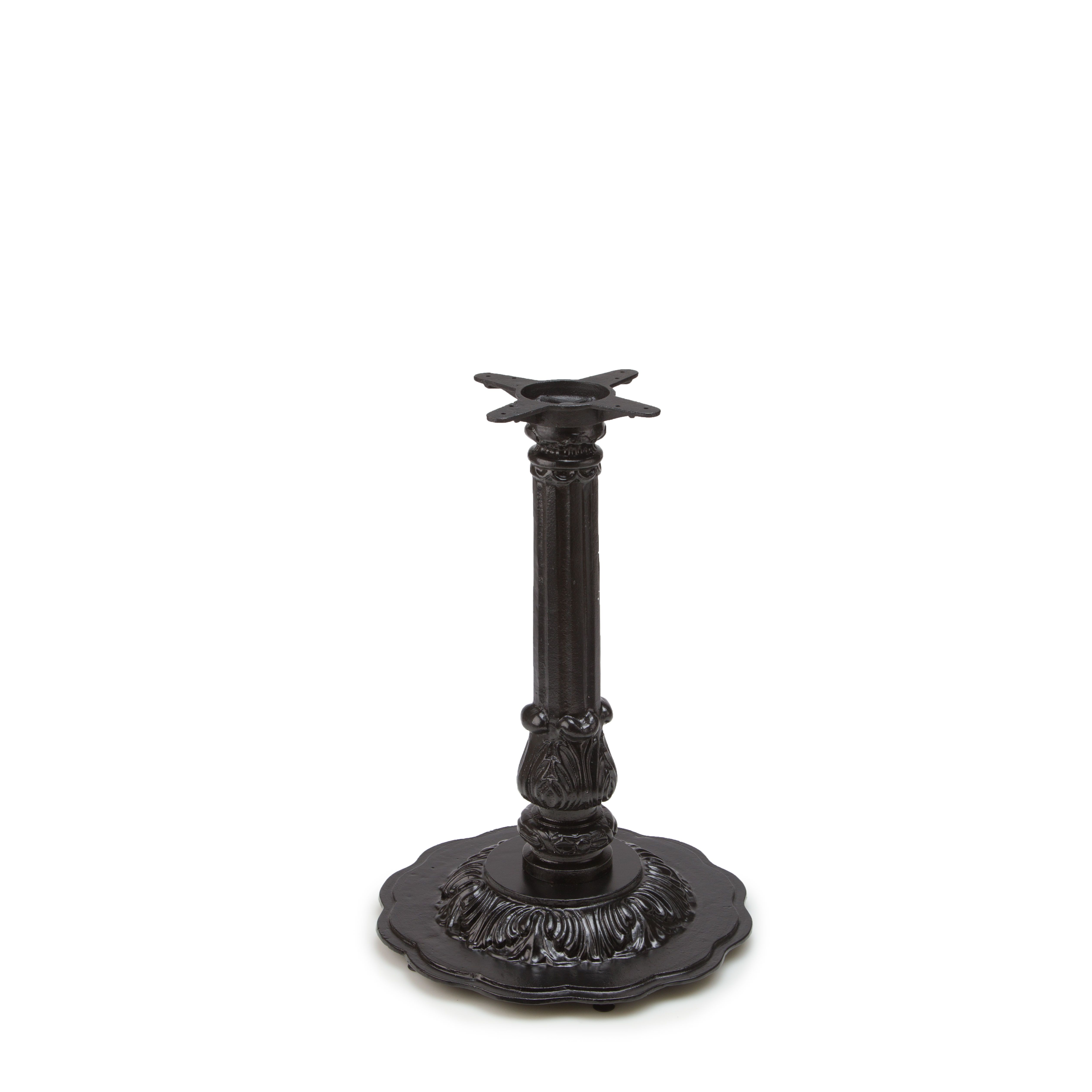 The ornate column and circular base will add a unique, European flair to your establishment, and the black, semi-gloss, powder coat finish blends seamlessly with any design, prevents corrosion and is easy to maintain. Utilizing a fully cast iron structure, these table bases are strong enough for the most demanding table tops; unlike similar designs made from steel, this base supports heavy materials such as granite or concrete without any flexing. The Tango 19 table base weights 67 pounds, features a 19" spread at the floor, an 11" cast iron mounting plate, and supports round or square table tops up to 36" in size. Available in two heights, dining heigh and vintage bar height, the Tango series table bases provide the versatility you need, with a design that won't spoil your décor.